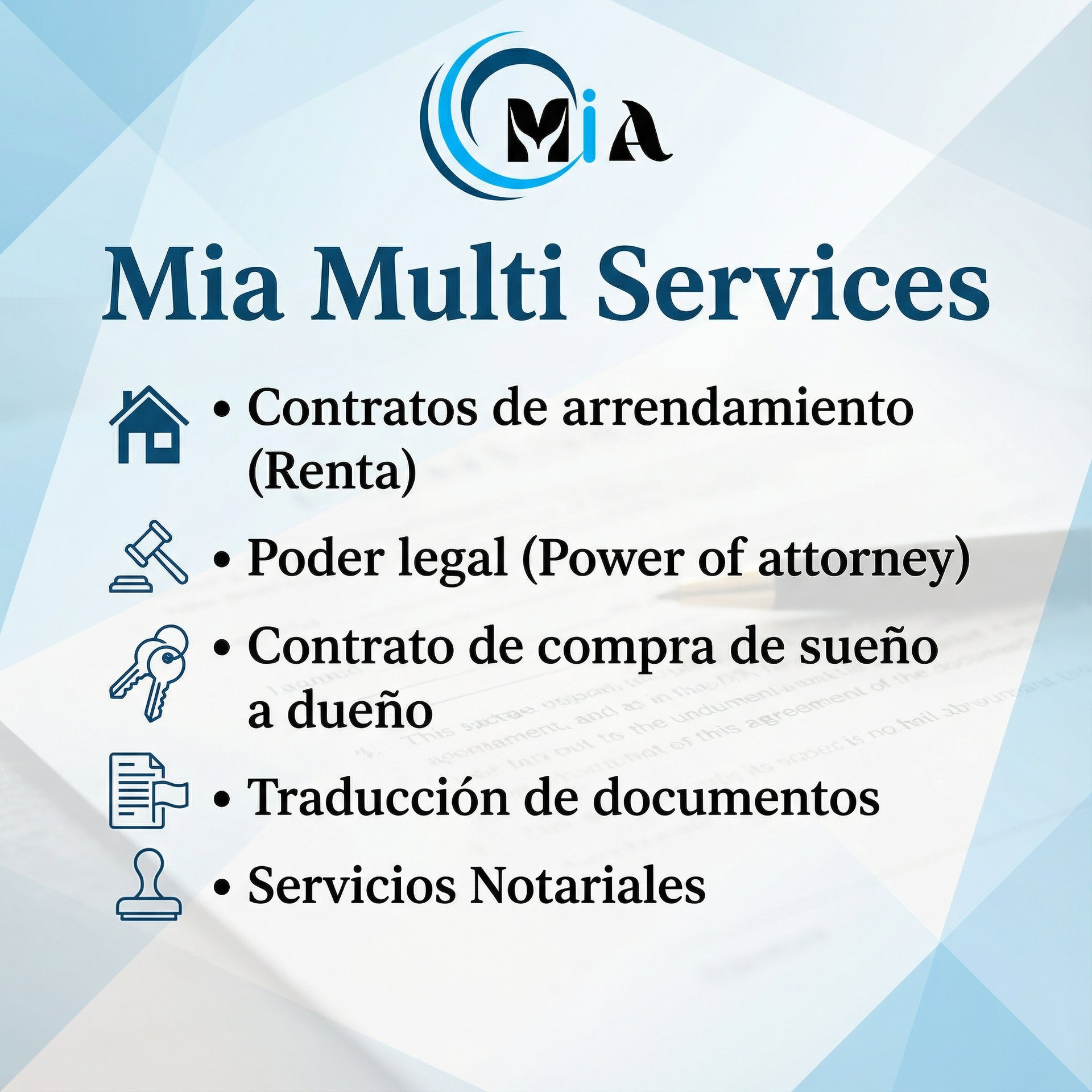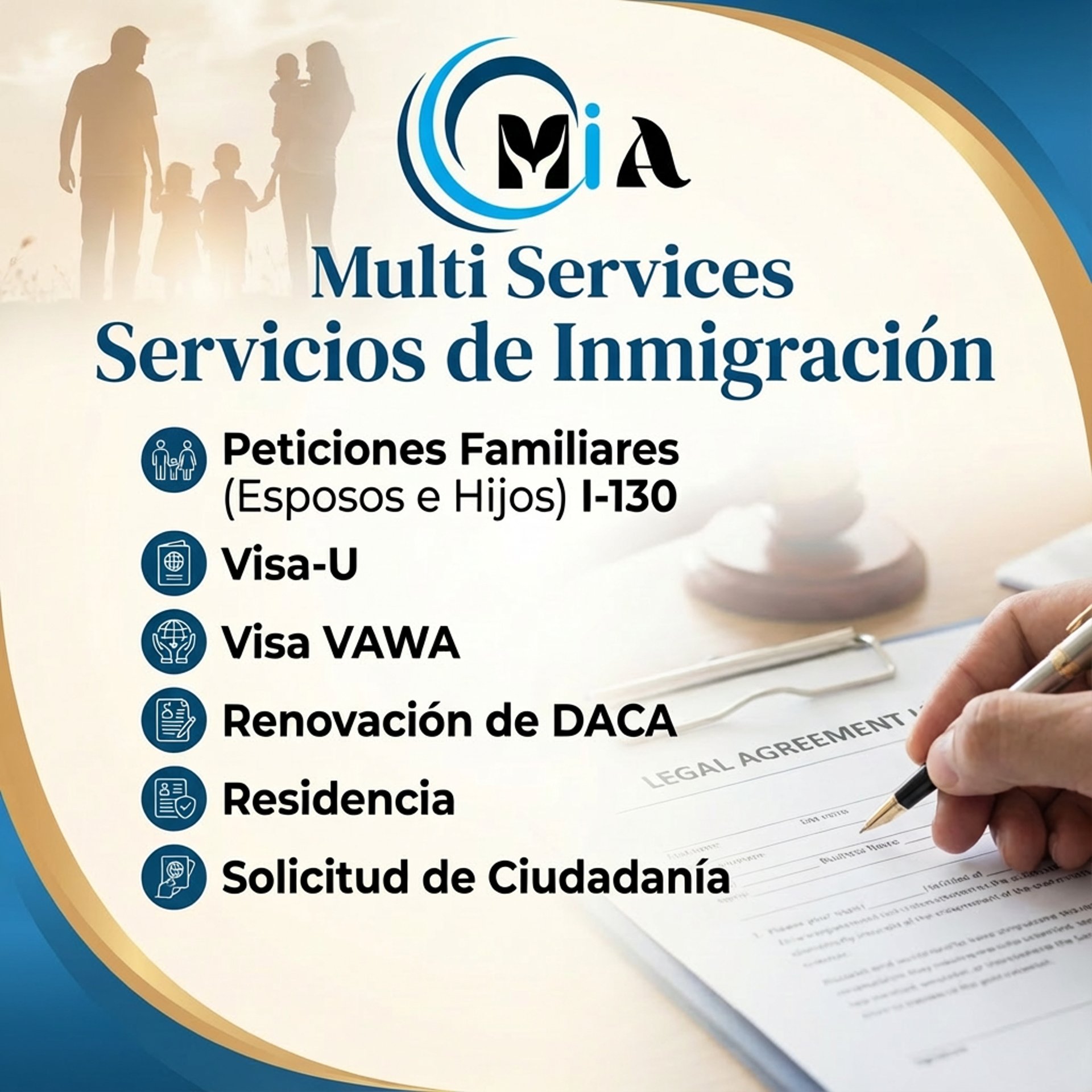 La oficina Multi-Servicios MIA es un recurso de servicios e información correcta la cual le brindará las herramientas necesarias para lograr cualquier objetivo y/o meta que tenga. Estamos comisionados a servir.